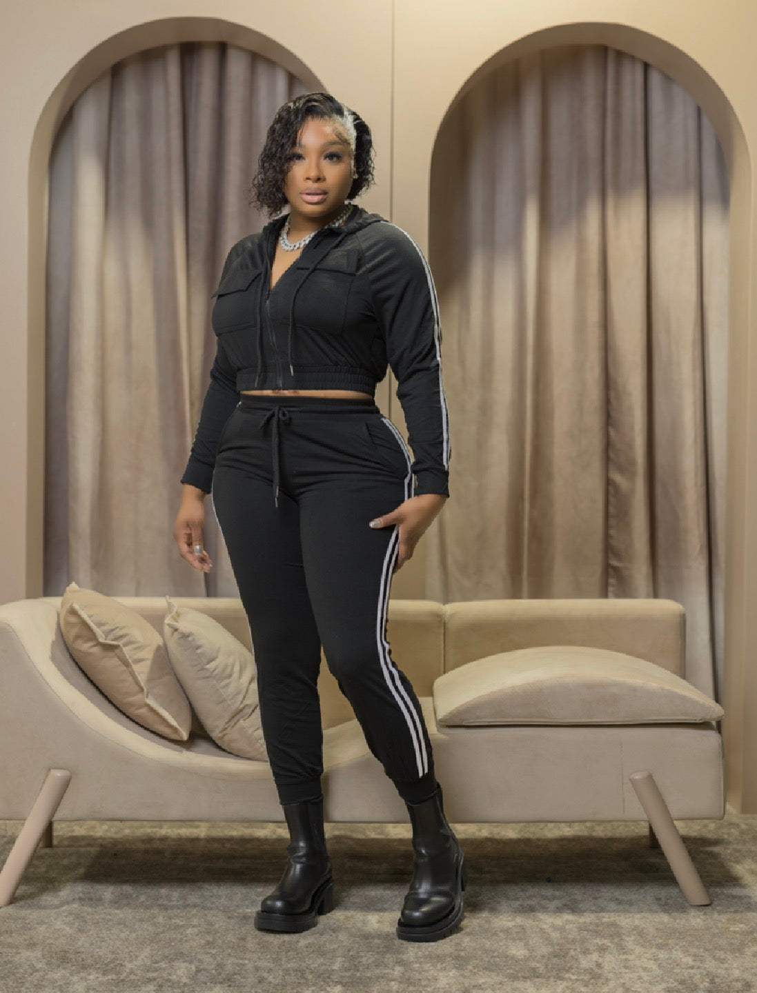 LETS CHILL TOGETHER PANTS SET BLACK/WHITE